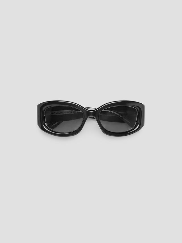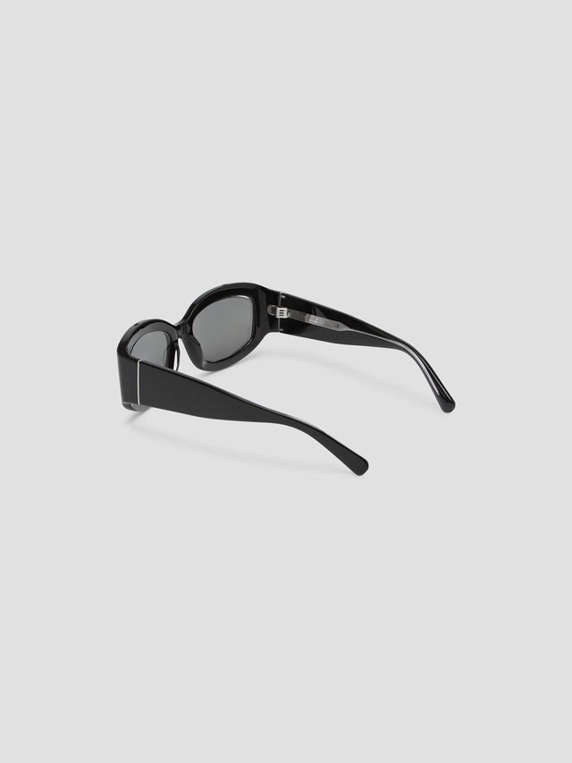 The signature Davies 99 sunglasses have a sleek, high-shine acetate frame with unique, cutaway lenses. The soft squared shape is both modern and universally flattering.