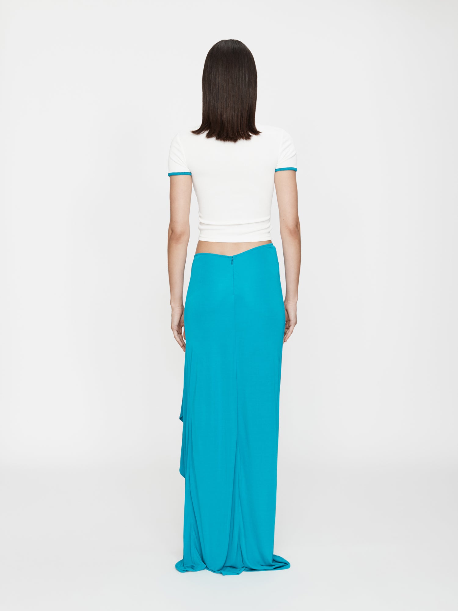 Codes of everyday wear spark curiosity with this contrast bind tee. Fine rib stretches with ease over the body while considered twist cut out detail draws the eye in.