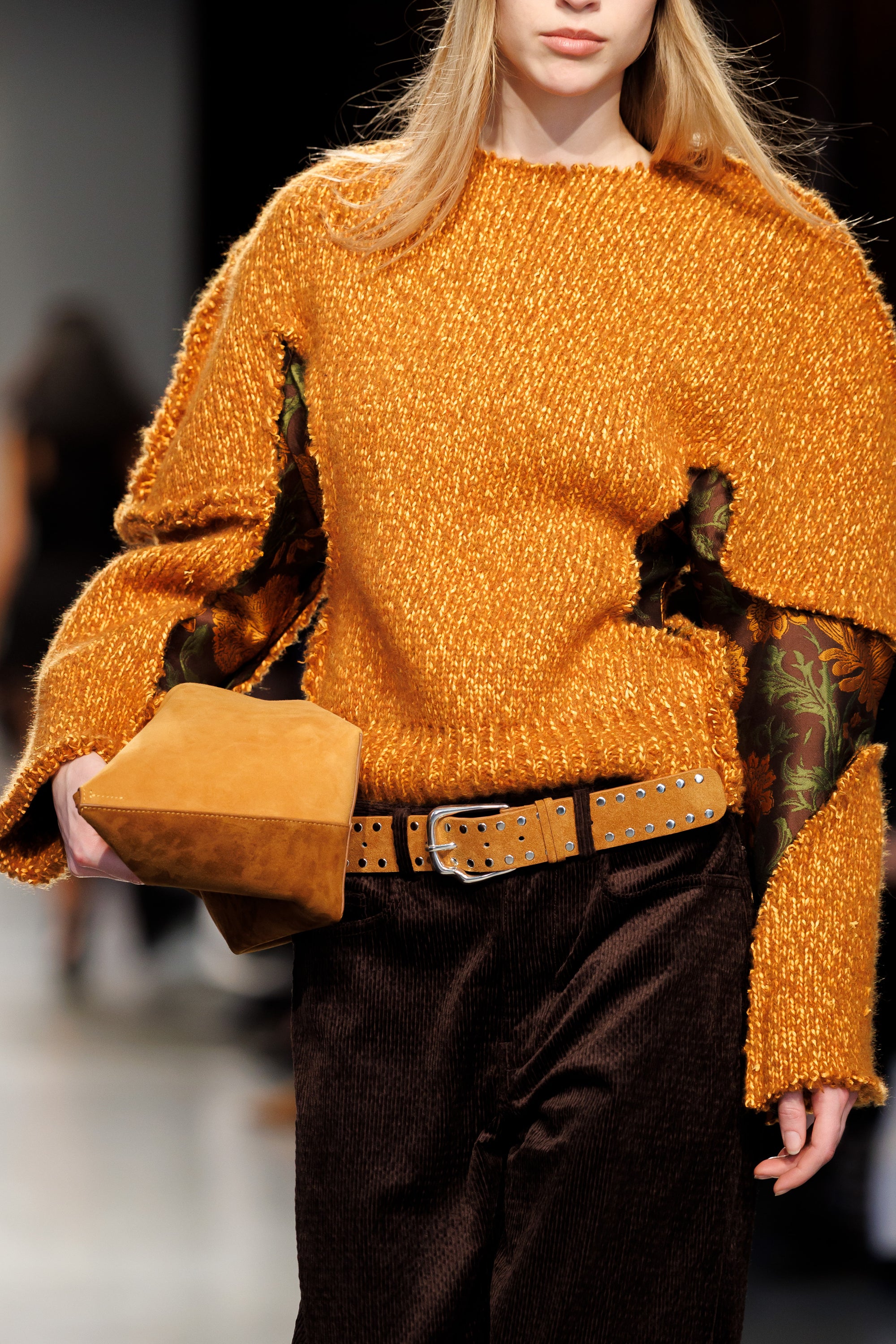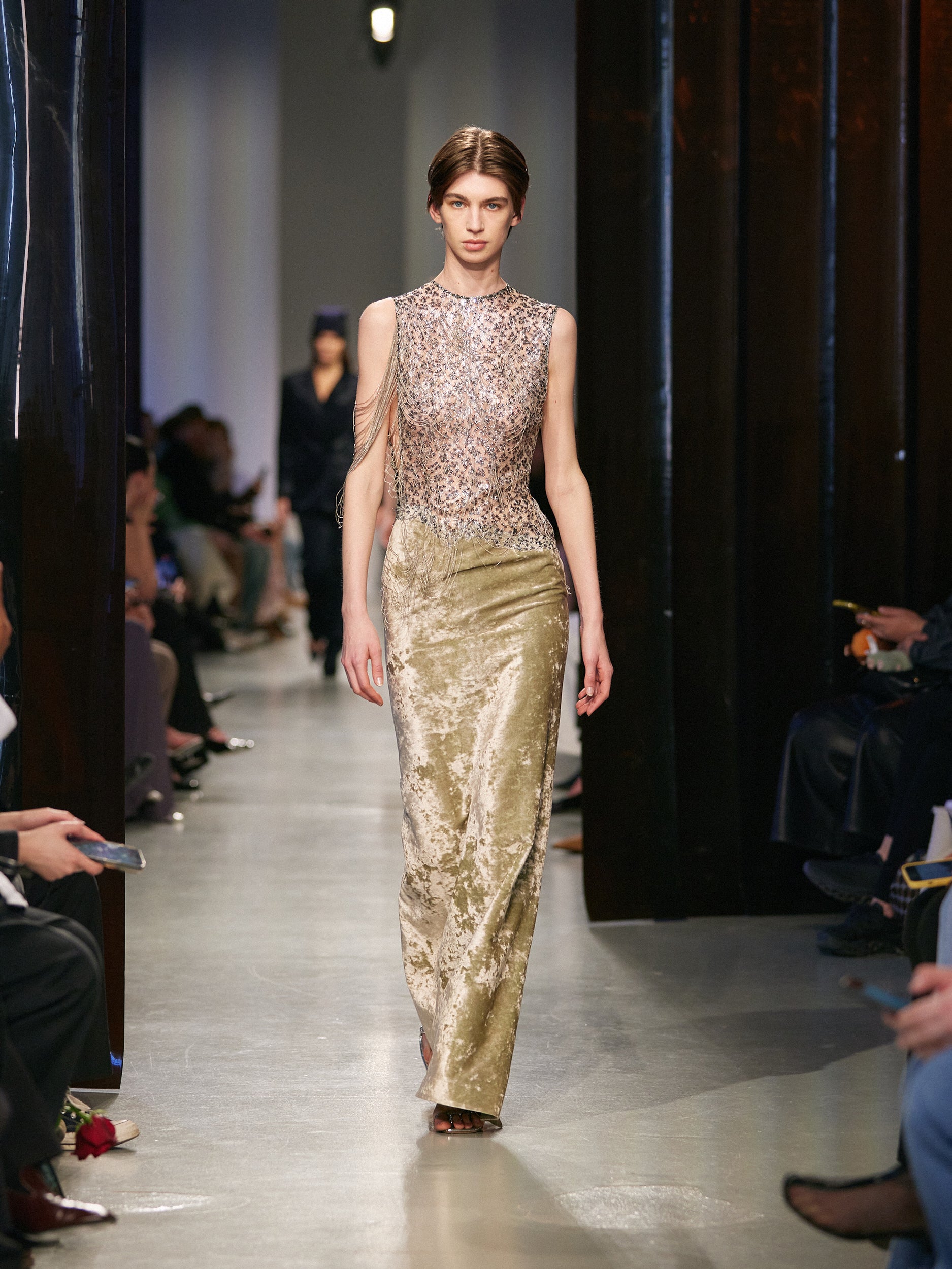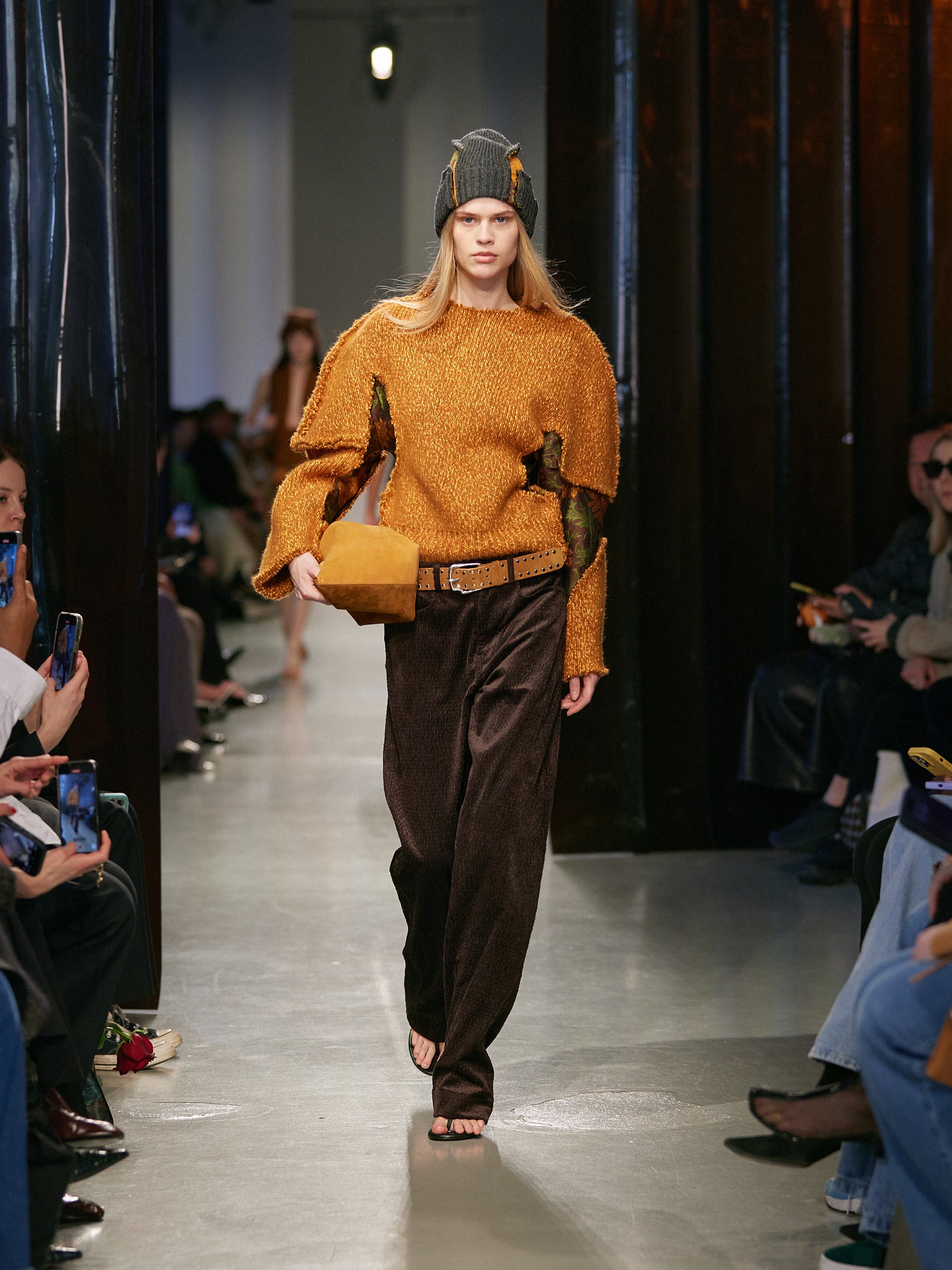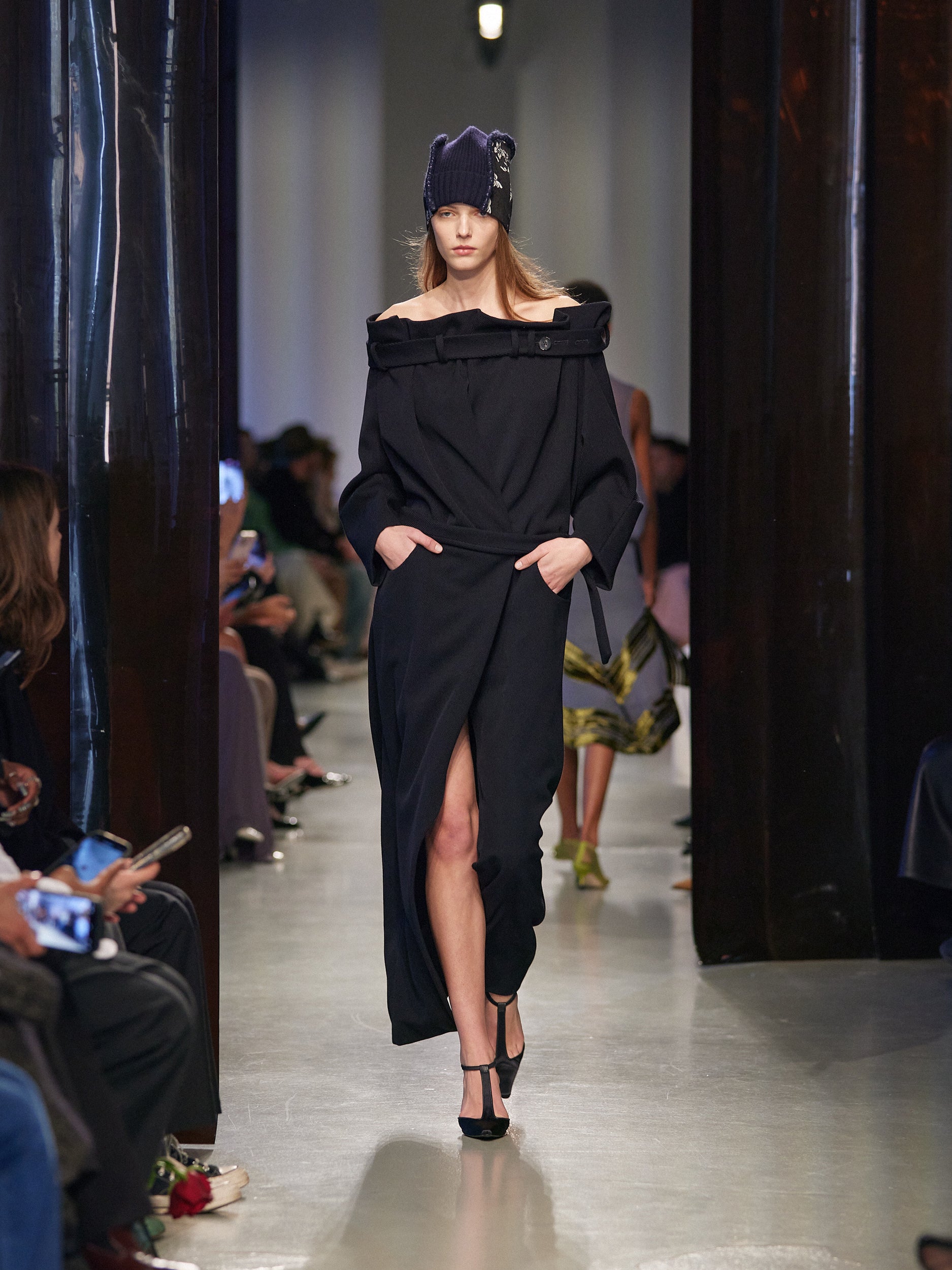The palette zeroed in on effortless elegance, where deep navy interacted with mustard, and rich purples and blacks gained a sense of levity alongside frothy sage greens. Liquorice, maroon and espresso leathers added depth, while metallic laces intertwined with metal accents, merging with plush velvets.