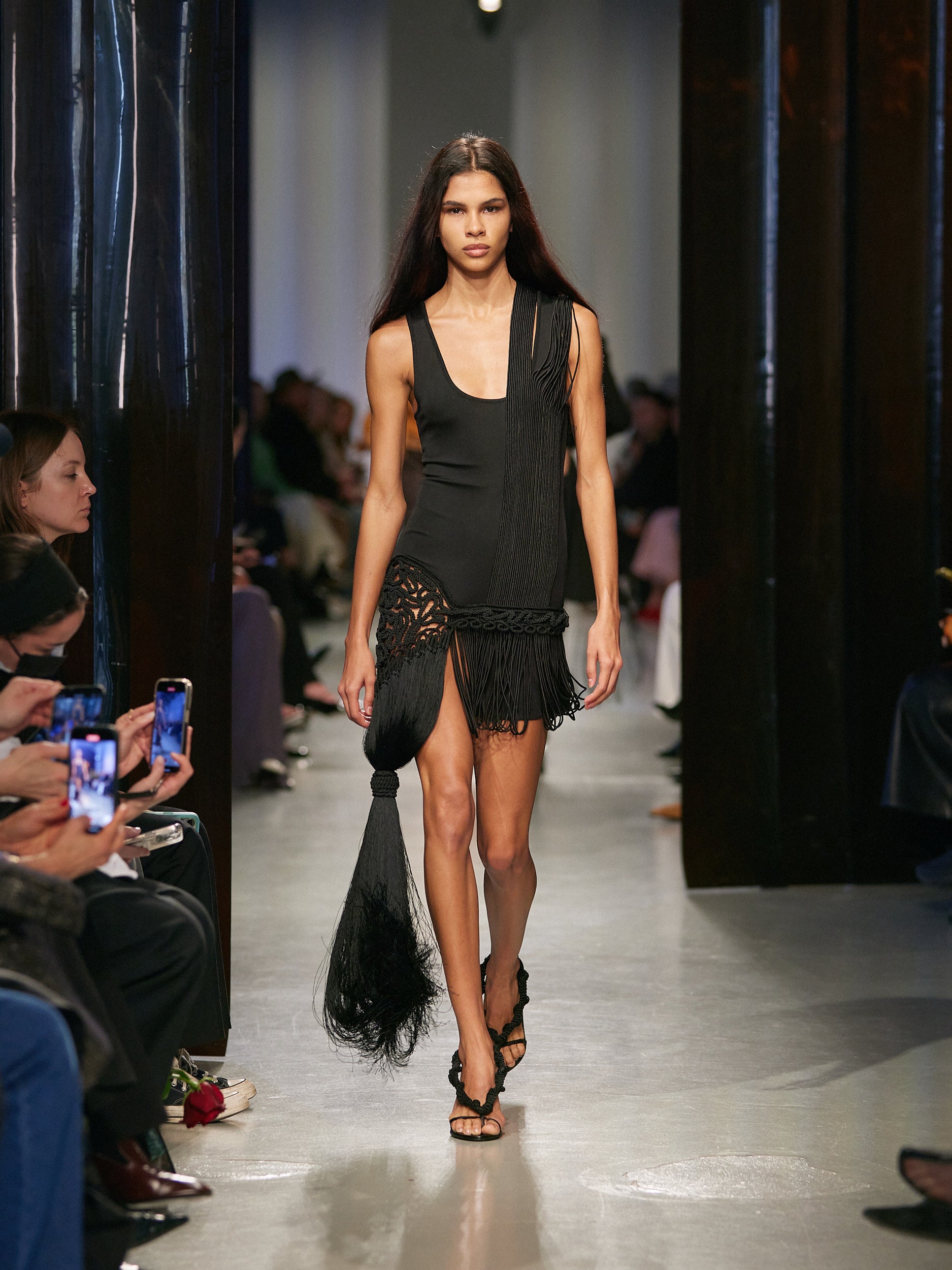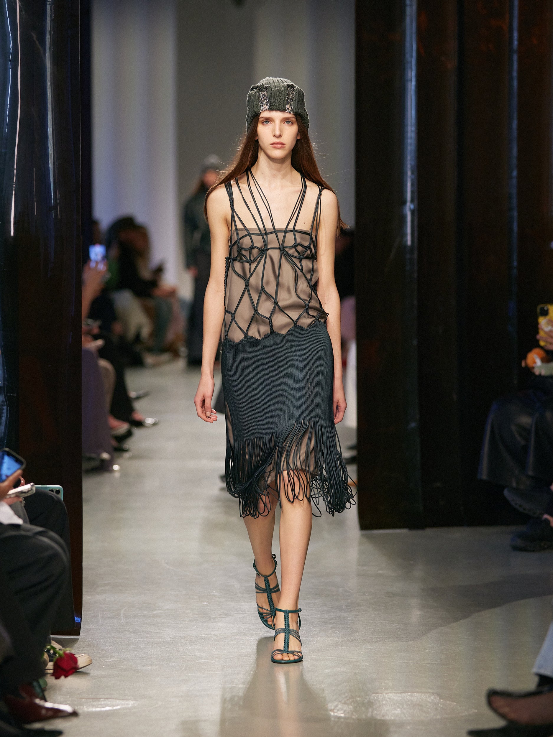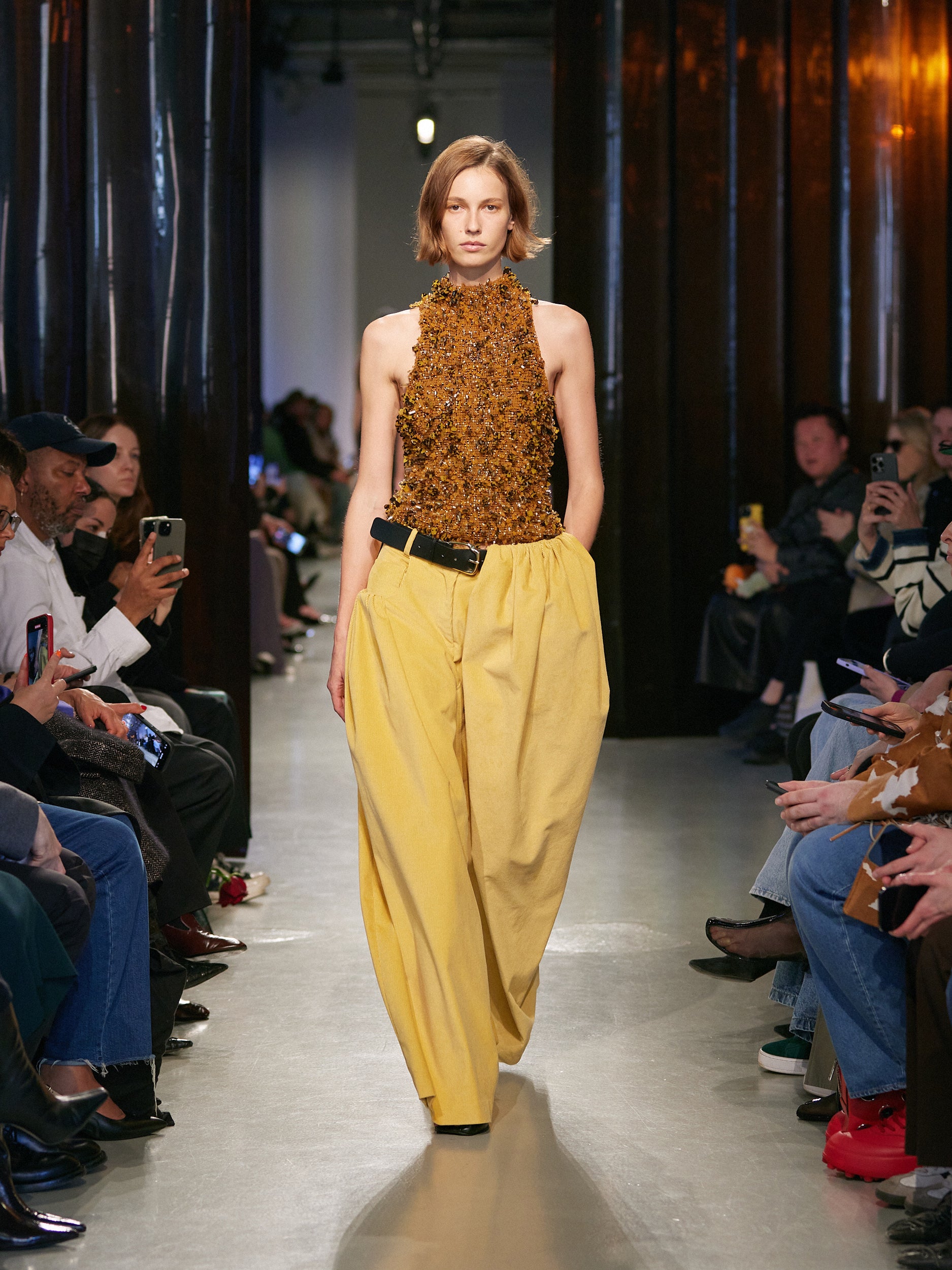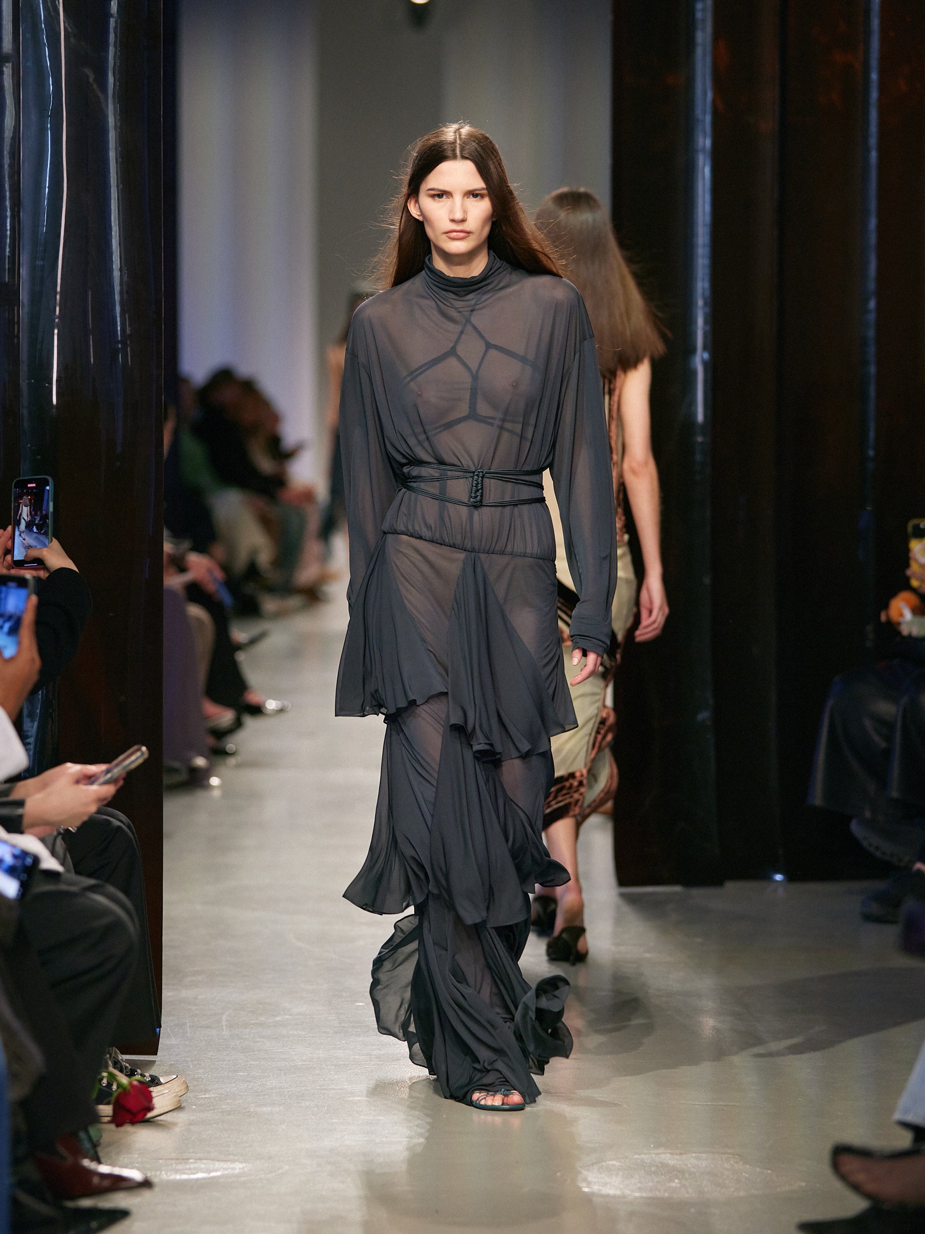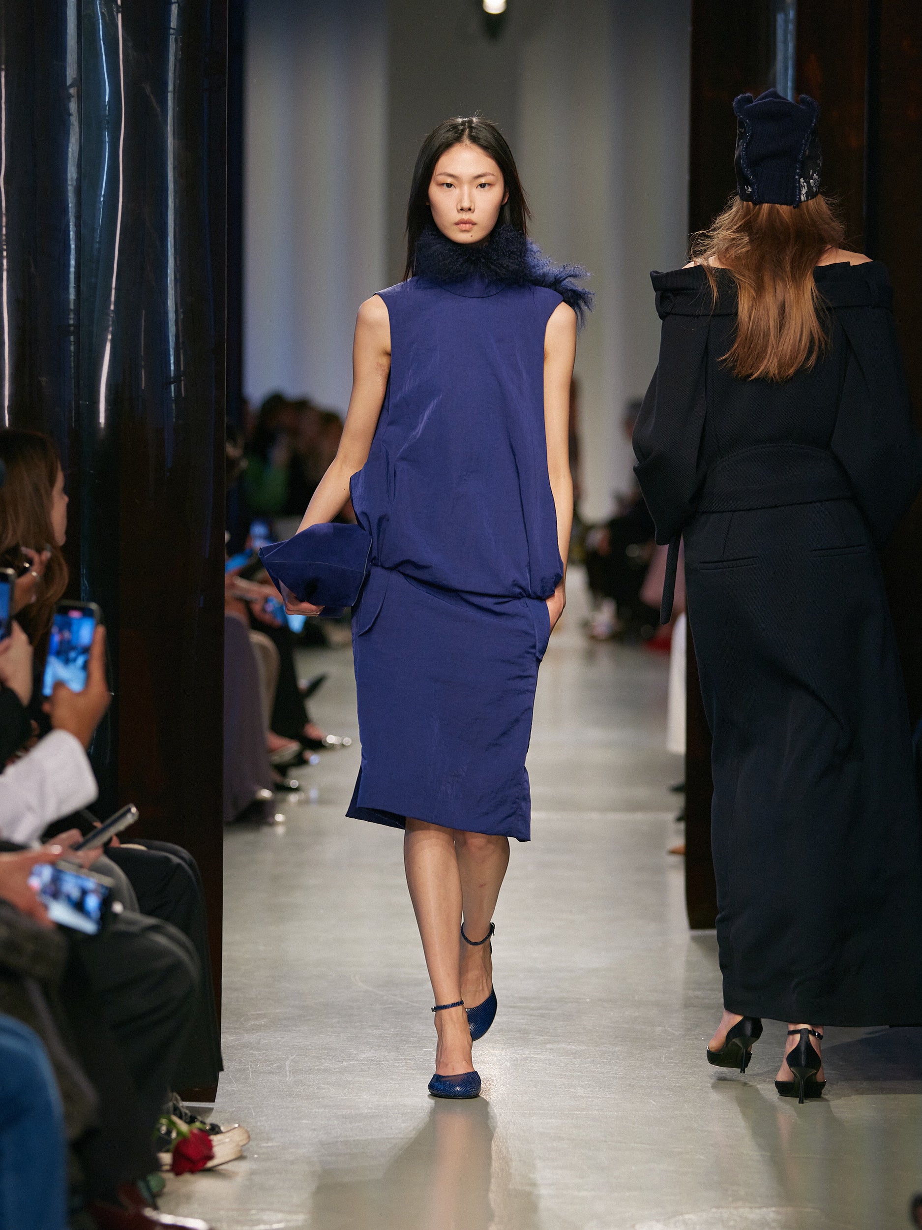 The palette zeroed in on effortless elegance, where deep navy interacted with mustard, and rich purples and blacks gained a sense of levity alongside frothy sage greens. Liquorice, maroon and espresso leathers added depth, while metallic laces intertwined with metal accents, merging with plush velvets.