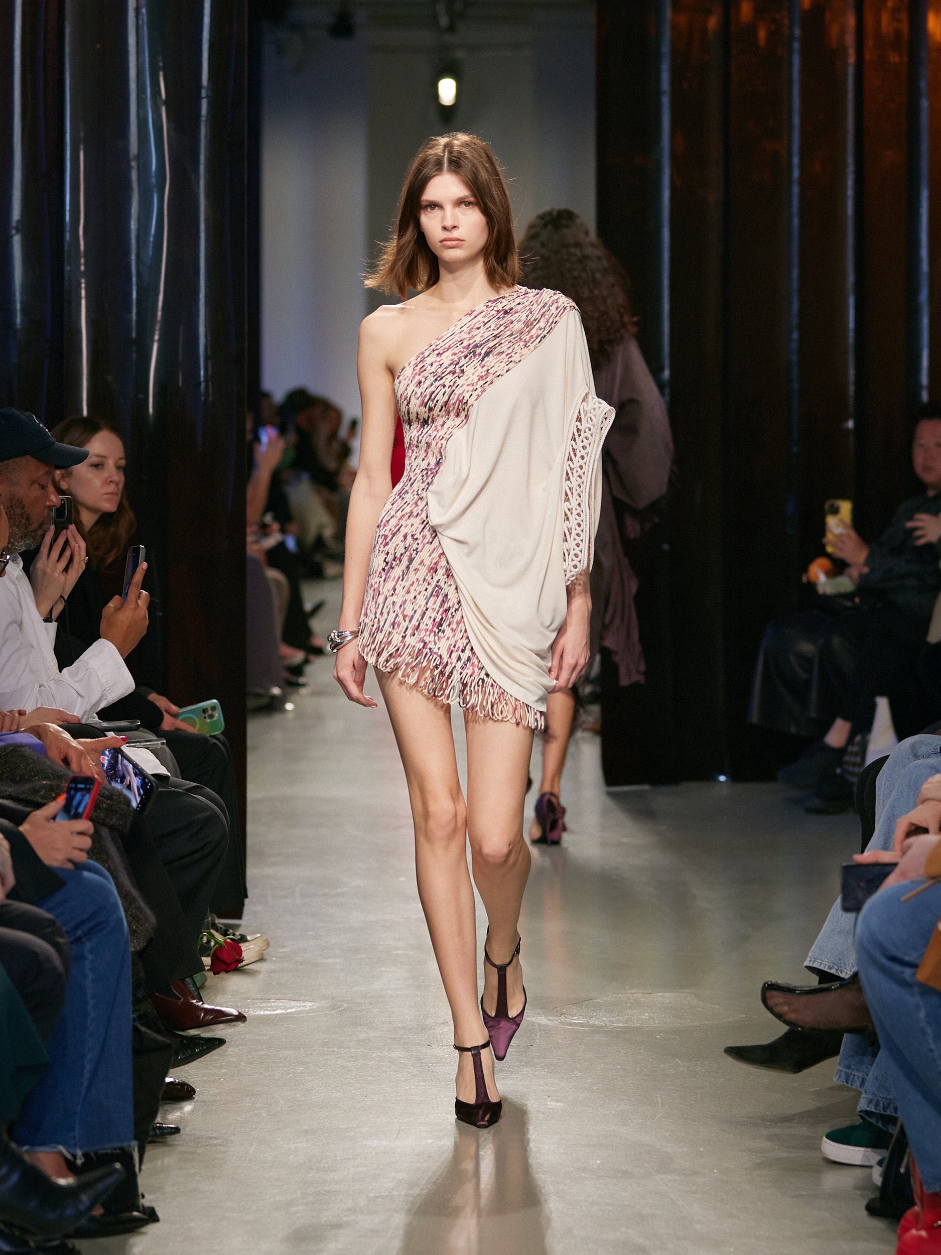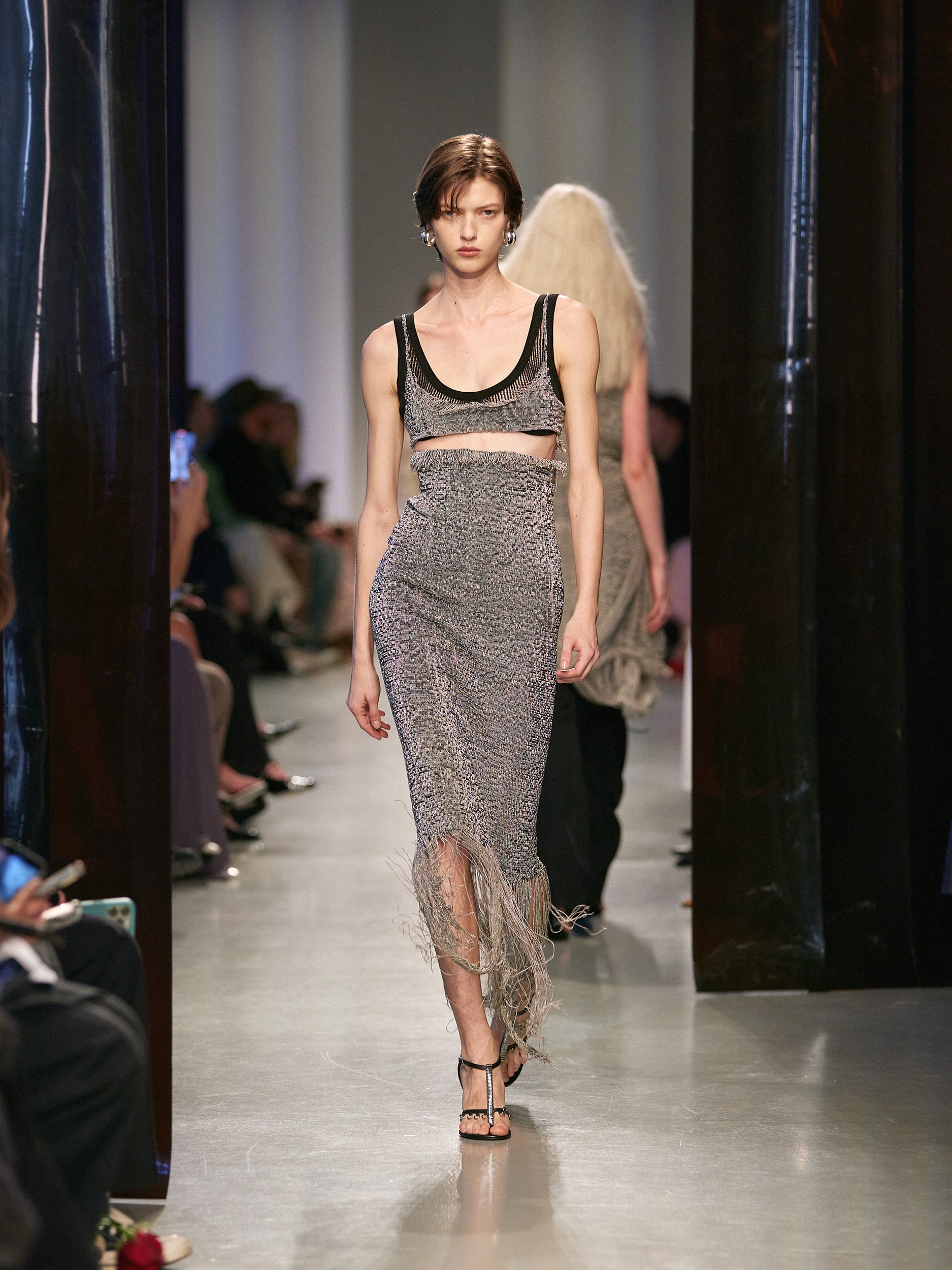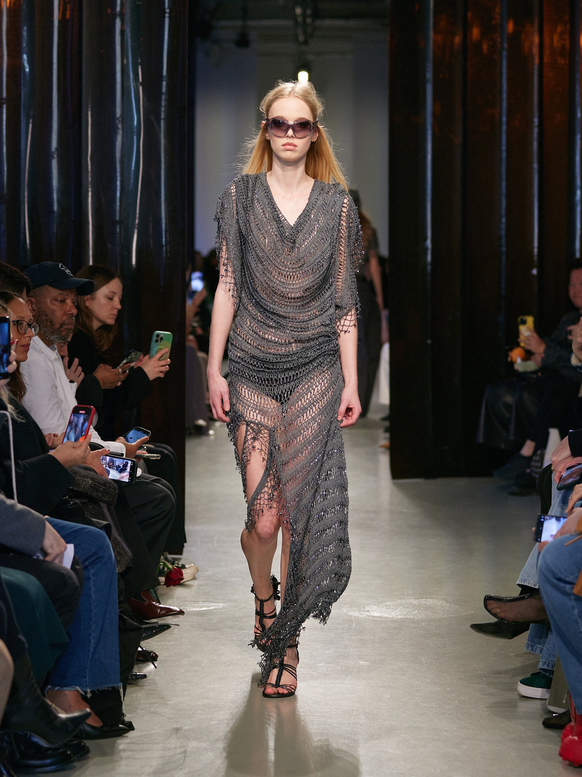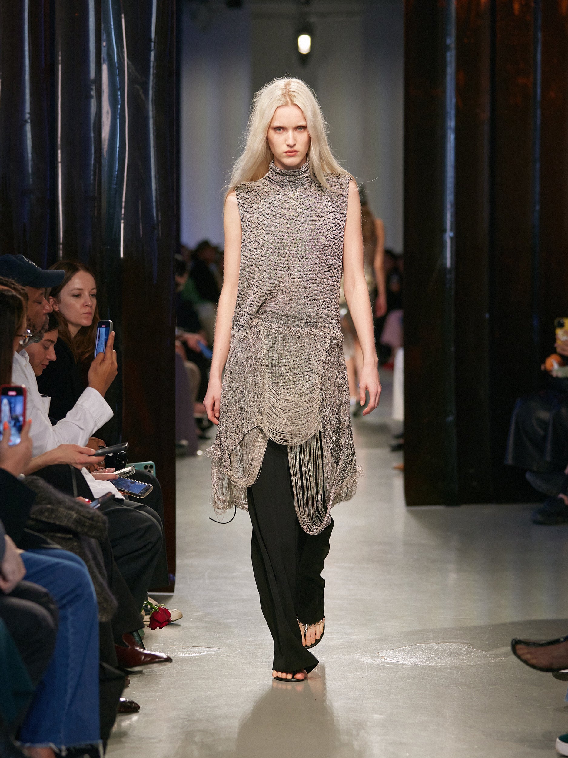 The palette zeroed in on effortless elegance, where deep navy interacted with mustard, and rich purples and blacks gained a sense of levity alongside frothy sage greens. Liquorice, maroon and espresso leathers added depth, while metallic laces intertwined with metal accents, merging with plush velvets.
