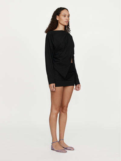 Crafted in structured cotton, this Aiba Draped Cotton Jersey Long Sleeve Dress features a sculptural draped overlay that twists across the body. An asymmetric cutout at the waist reveals skin through the gathered silhouette, balancing volume with form. Style with structural heels or Pierced Flip Flops for an elevated approach to day-to-night dressing.