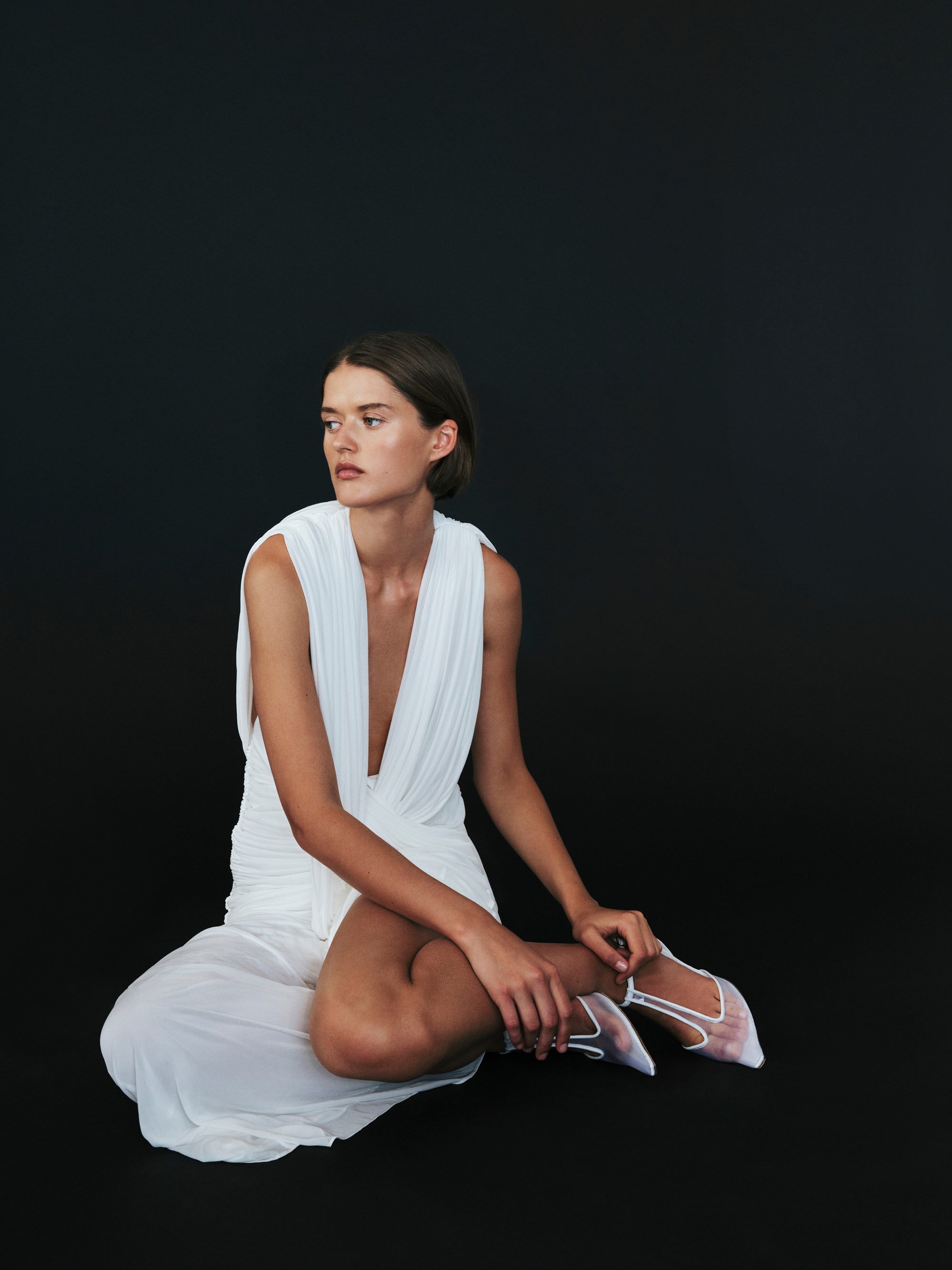 Exploring the interplay between sharp tailoring and fluid details, pieces appear simultaneously bold and effortless.
