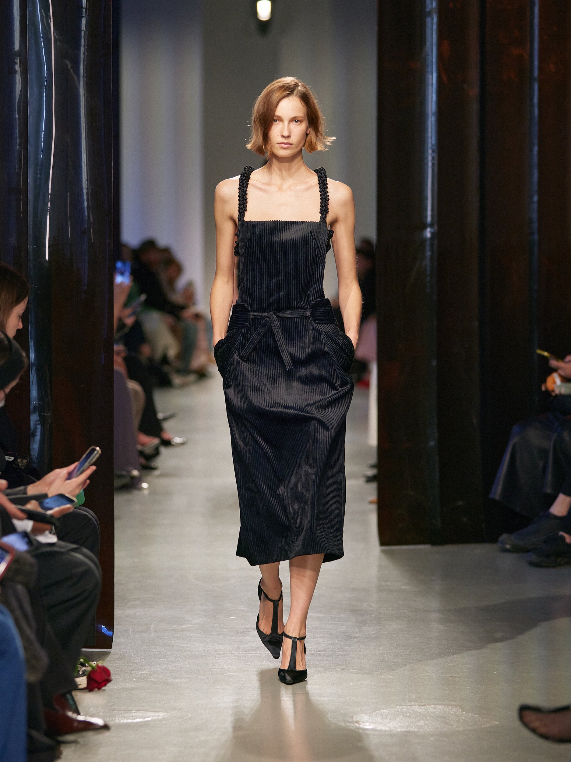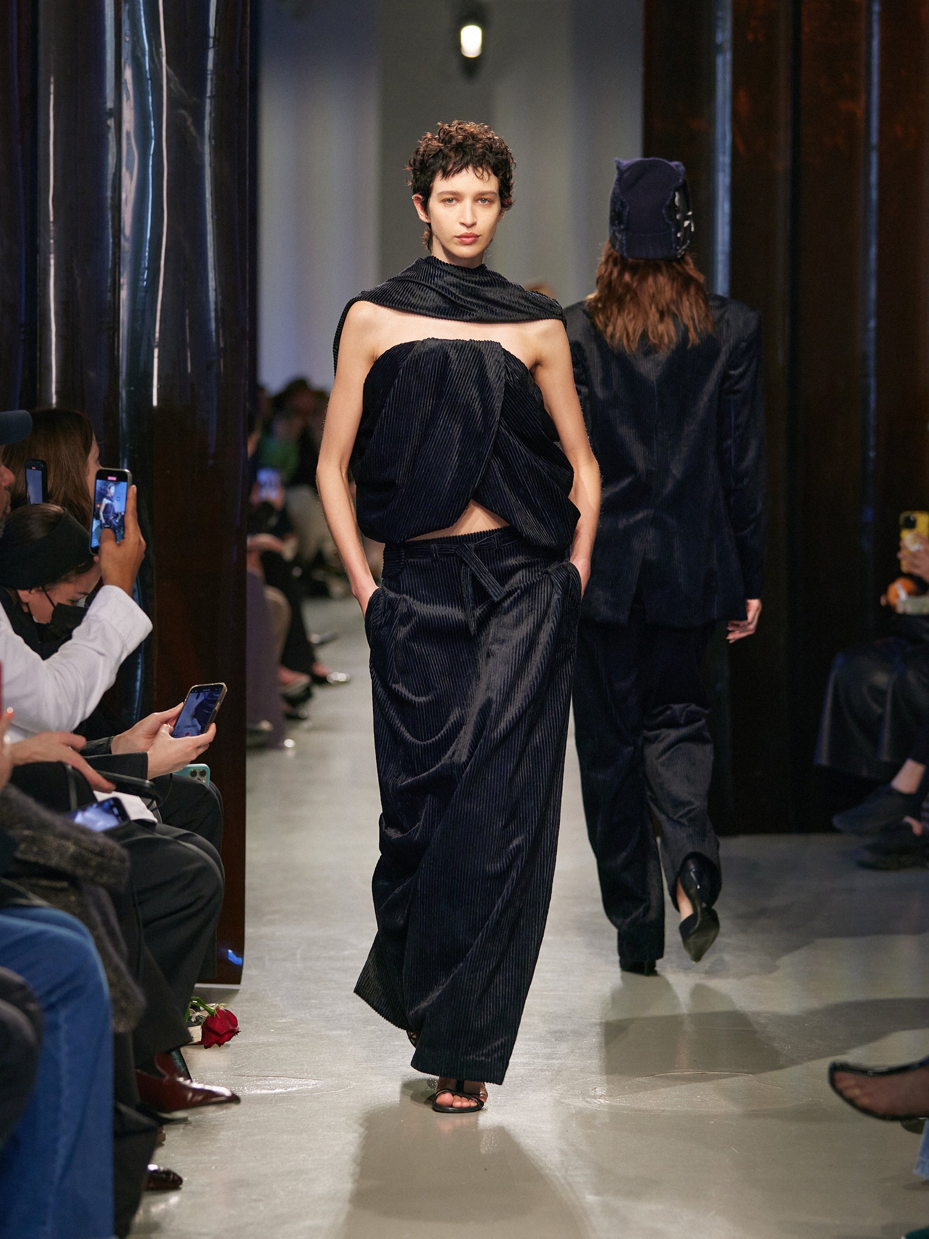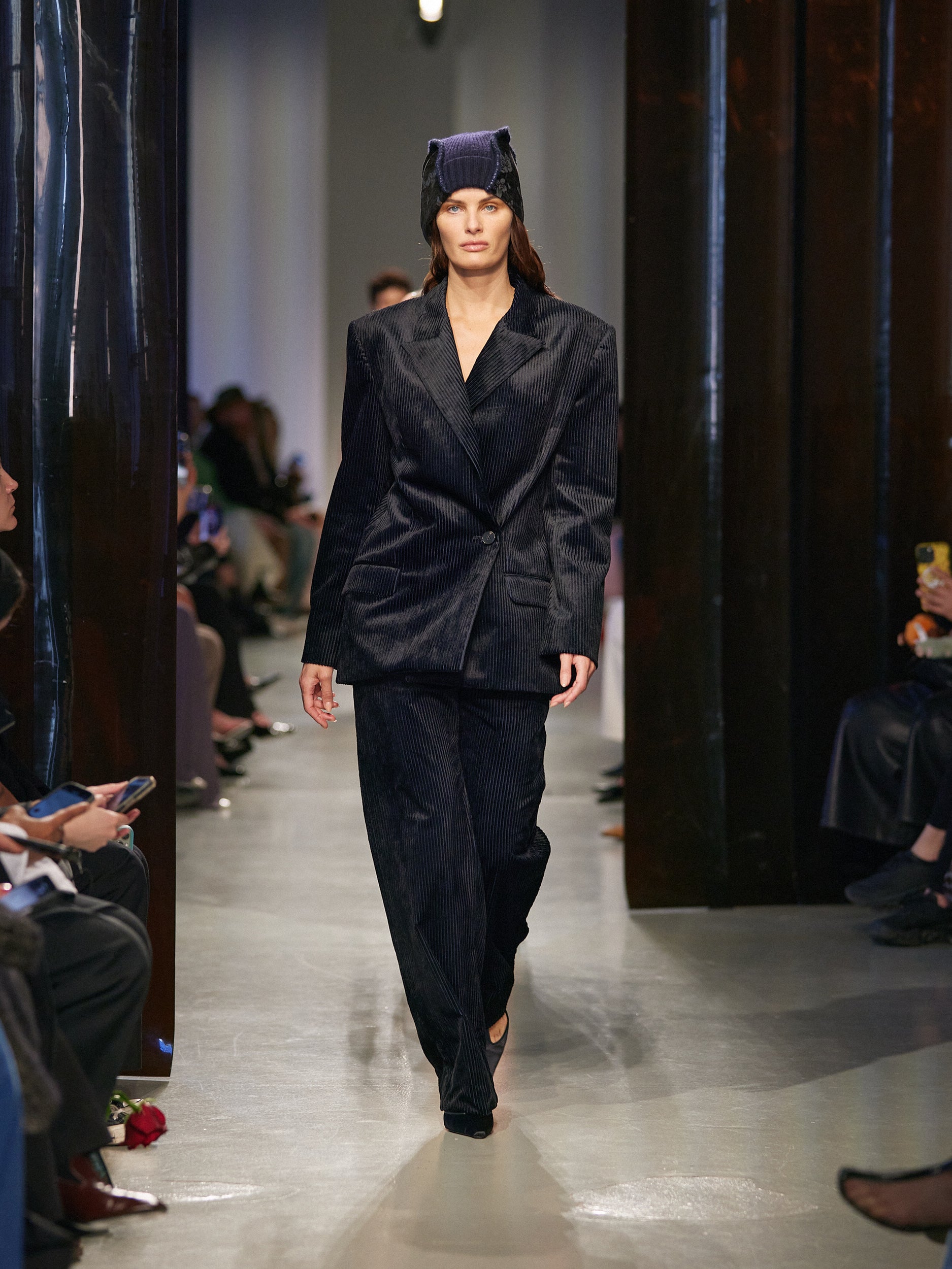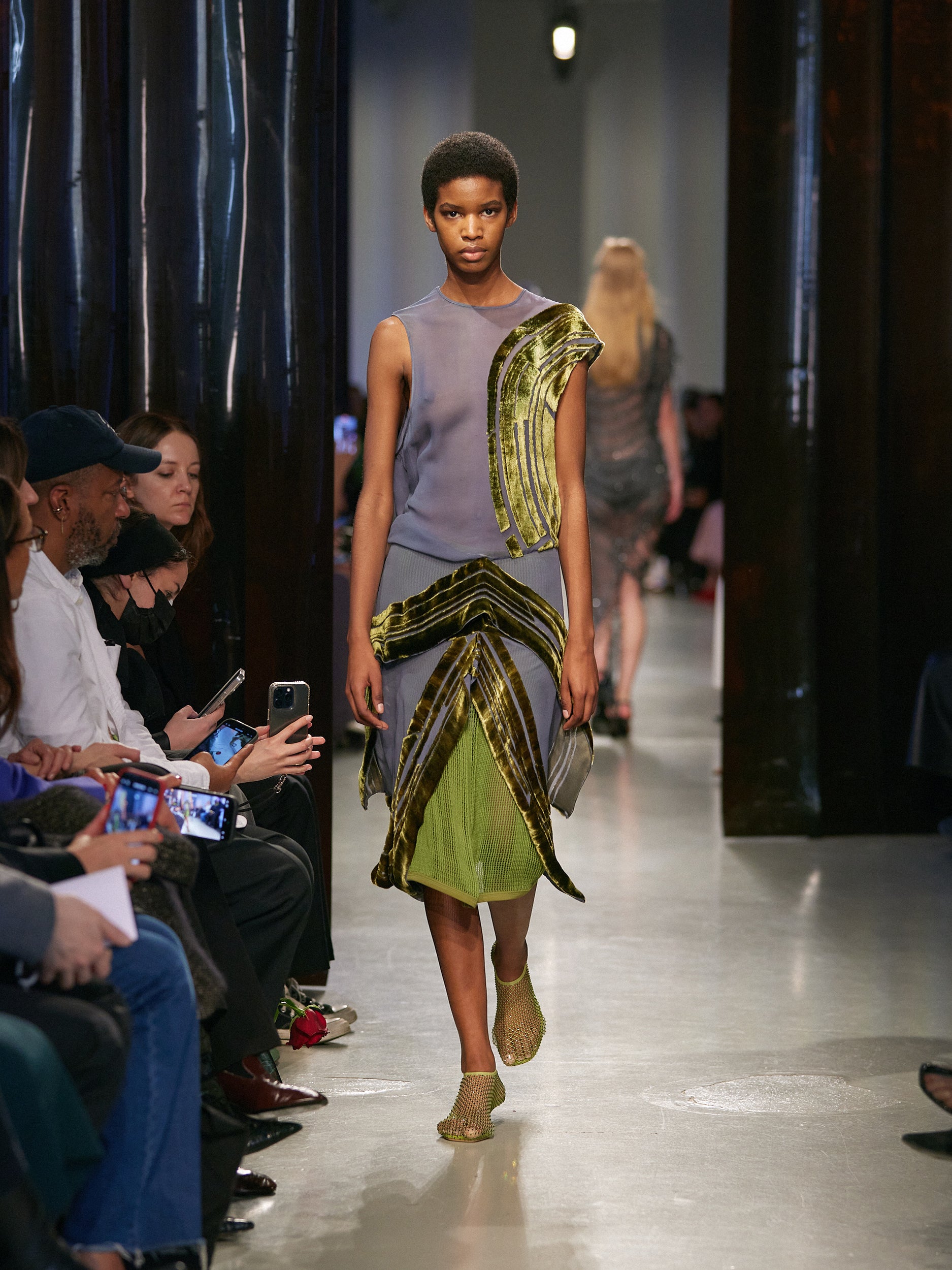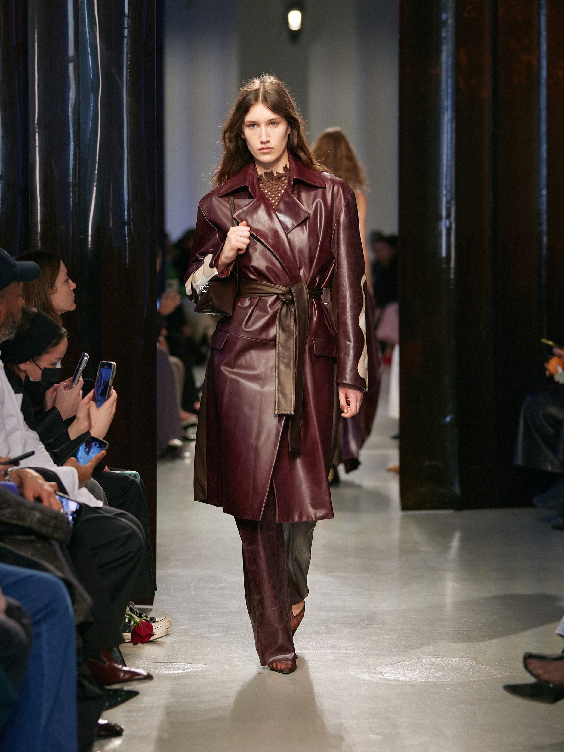 The palette zeroed in on effortless elegance, where deep navy interacted with mustard, and rich purples and blacks gained a sense of levity alongside frothy sage greens. Liquorice, maroon and espresso leathers added depth, while metallic laces intertwined with metal accents, merging with plush velvets.