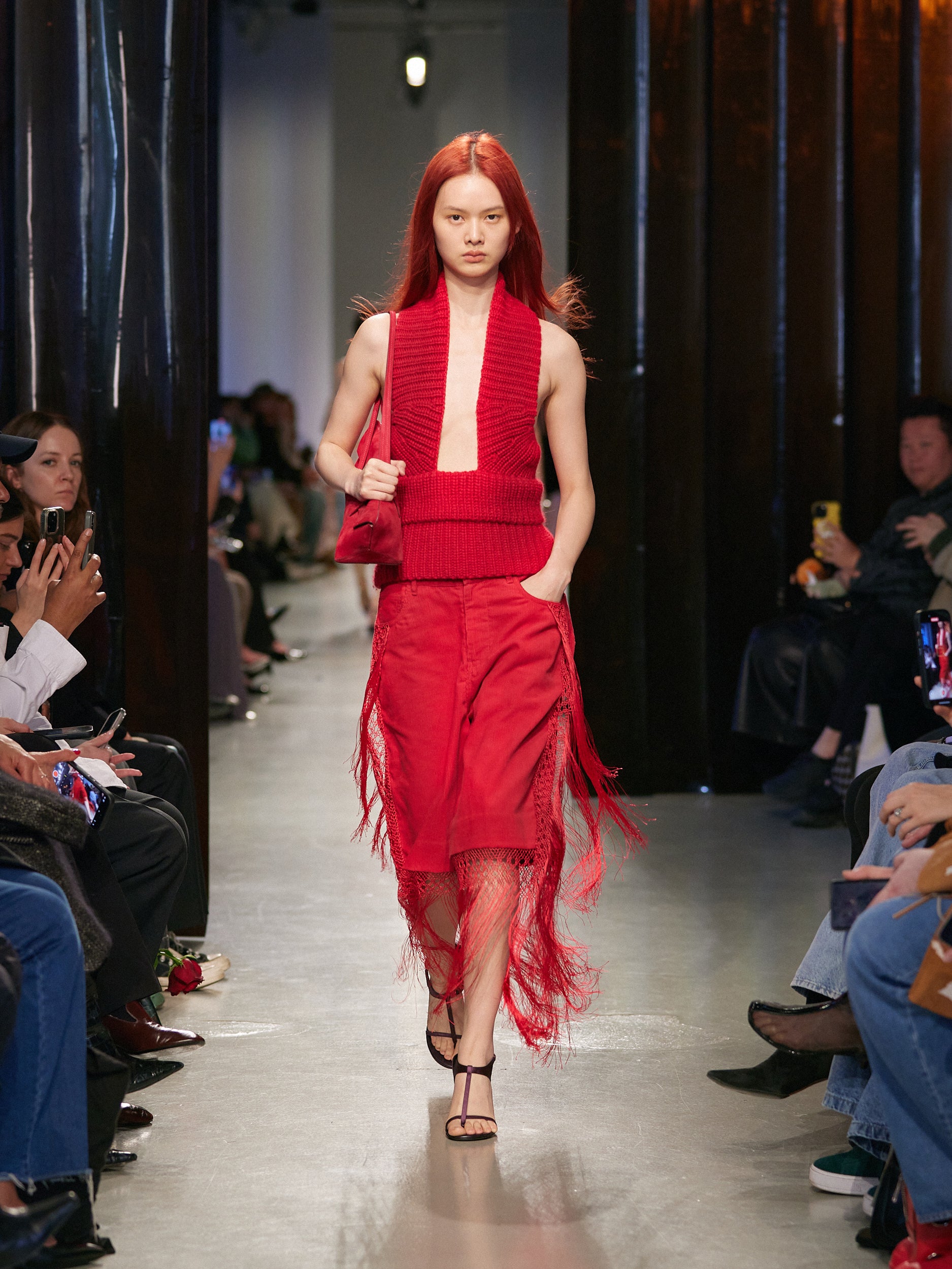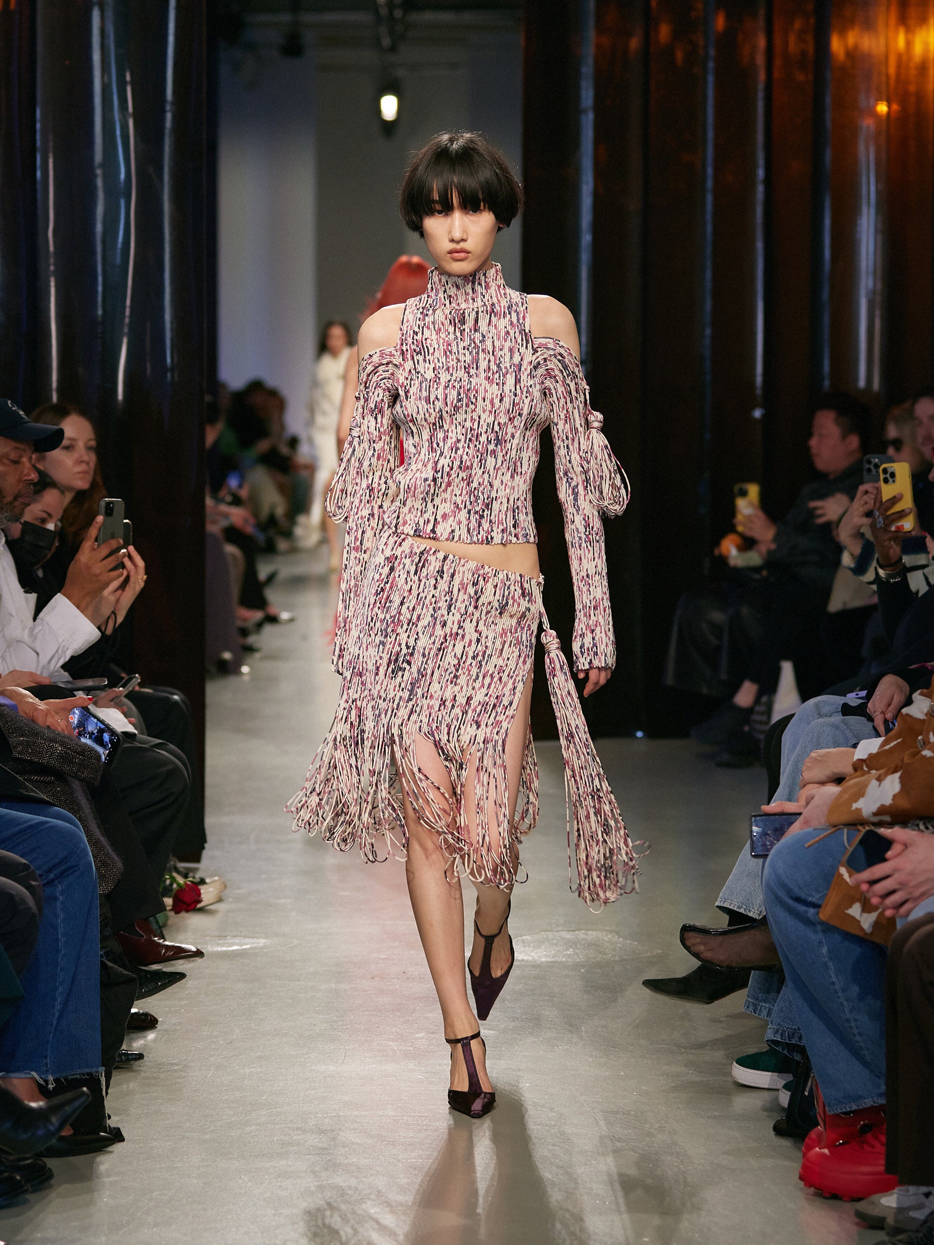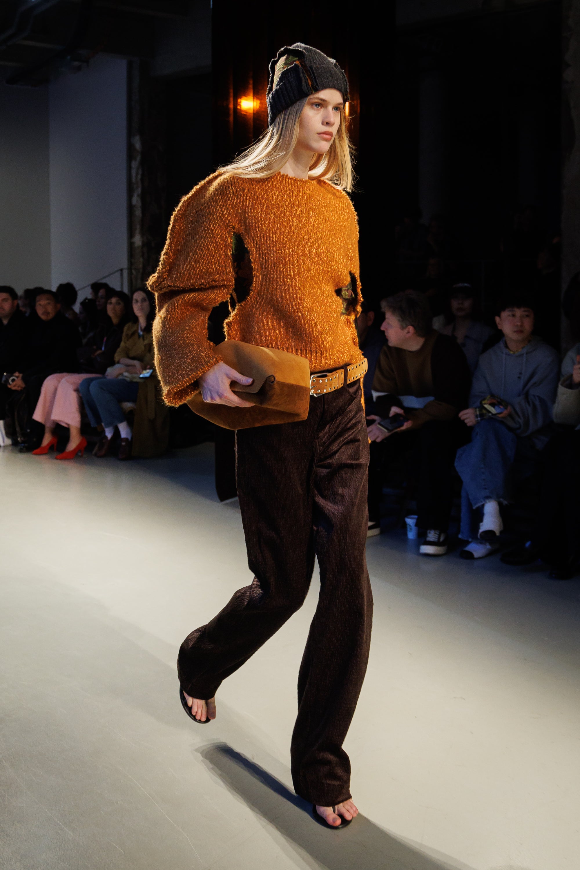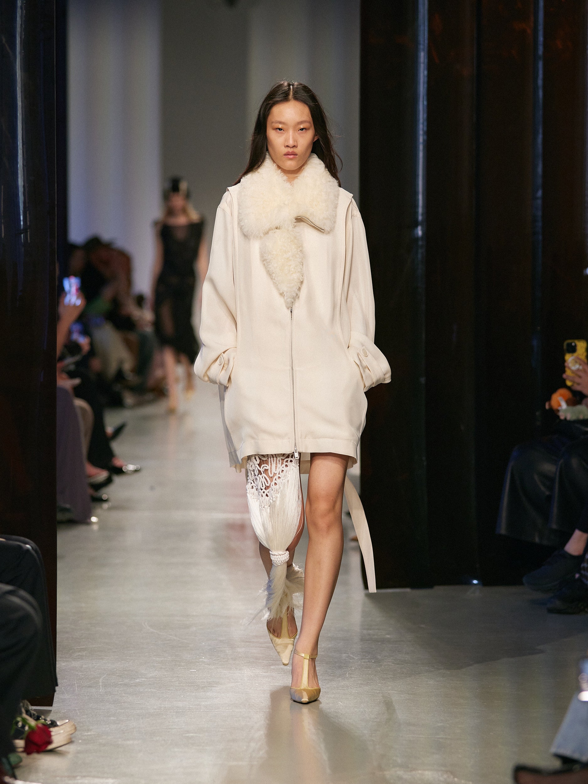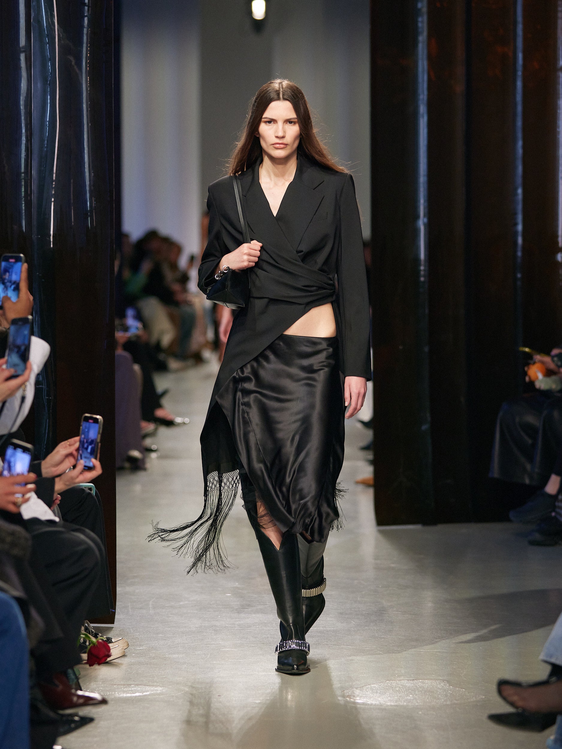 The palette zeroed in on effortless elegance, where deep navy interacted with mustard, and rich purples and blacks gained a sense of levity alongside frothy sage greens. Liquorice, maroon and espresso leathers added depth, while metallic laces intertwined with metal accents, merging with plush velvets.